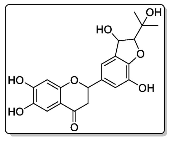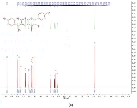Compound 1—6-C-[1-(4-hydroxyphenyl)ethyl]aromadendrin (Figure 7), 25 mg of the compound was isolated: the yield was 0.21%.