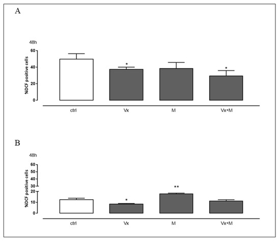 3.3. Vx-809 and Matrine Co-Treatment Reduces CF-Induced Oxidative Stress