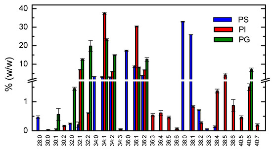 3.1.2. Relative Abundance of the Different Phospholipid Classes