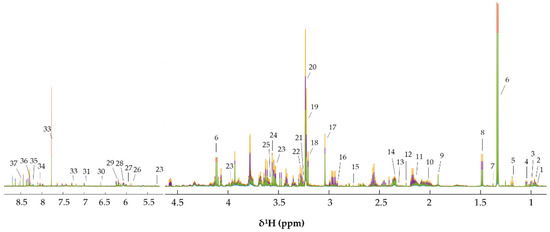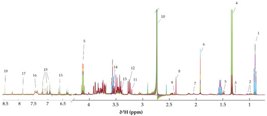 - Dona, A.C.; Kyriakides, M.; Scott, F.; Shephard, E.A.; Varshavi, D.; Veselkov, K.; Everett, J.R. A guide to the identification of metabolites in NMR-based metabonomics/metabolomics experiments. Comput. Struct. Biotechnol. J. 2016, 14, 135–153. [Google Scholar] [CrossRef]