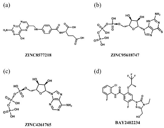 Table 4. ZINC8577218, ZINC4261765, and ZINC95618747 had great performance with high vote scores among the top 10 candidates and thus were determined as candidates; the last two target multiple proteins. Their chemical scaffolds are displayed in