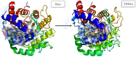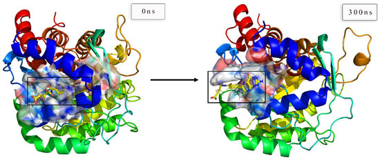 Finally, changes in the initial and last conformations in MD simulations are shown in