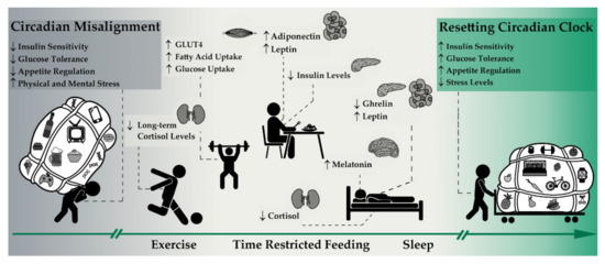 3. Asher, G.; Sassone-Corsi, P. Time for Food: The Intimate Interplay between Nutrition, Metabolism, and the Circadian Clock. Cell 2015, 161, 84–92. [Google Scholar] [CrossRef]