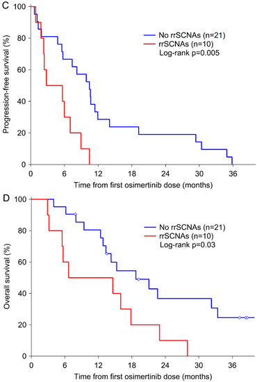 | Case 42 | del19, T790M | No rrSCNAs | <3.0% | - | CDKN2A | 8.3% |