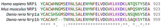 - Parker, M.W.; Linkugel, A.D.; Kooi, C.W.V. Effect of C-Terminal Sequence on Competitive Semaphorin Binding to Neuropilin-1. J. Mol. Biol. 2013, 425, 4405–4414. [Google Scholar] [CrossRef]