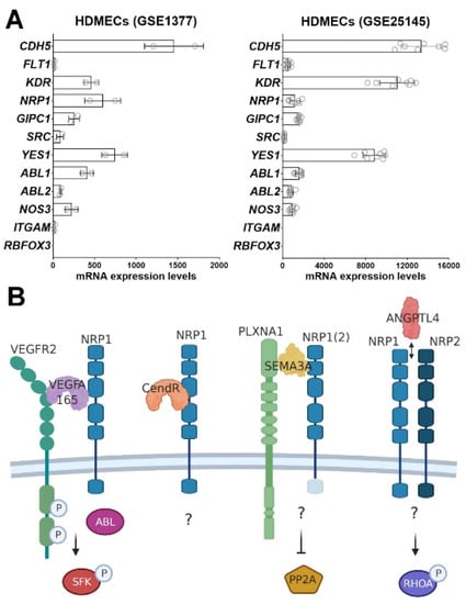 - Lanahan, A.; Zhang, X.; Fantin, A.; Zhuang, Z.; Rivera-Molina, F.; Speichinger, K.; Prahst, C.; Zhang, J.; Wang, Y.; Davis, G.; et al. The Neuropilin 1 Cytoplasmic Domain Is Required for VEGF-A-Dependent Arteriogenesis. Dev. Cell 2013, 25, 156–168. [Google Scholar] [CrossRef]