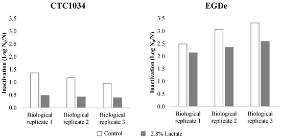 3.2.3. Effect of Lactate Exposure on L. monocytogenes