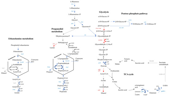 - Xue, J.; Murrieta, C.M.; Rule, D.C.; Miller, K.W. Exogenous or L-Rhamnose-derived 1,2-Propanediol is metabolized via a pduD-dependent pathway in Listeria innocua. Appl. Environ. Microbiol. 2008, 74, 7073–7079. [Google Scholar] [CrossRef]