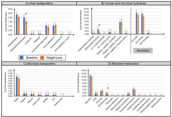 - Tran, H.Q.; Mills, R.H.; Peters, N.V.; Holder, M.K.; de Vries, G.J.; Knight, R.; Chassaing, B.; Gonzalez, D.J.; Gewirtz, A.T. Associations of the Fecal Microbial Proteome Composition and Proneness to Diet-induced Obesity. Mol. Cell Proteom. 2019, 18, 1864–1879. [Google Scholar] [CrossRef]
