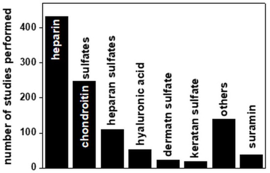 Distribution of computational studies among the different GAGs. The bar “others” includes other natural GAGs and synthetic GAG-mimicking compounds. For further details on the bibliographic research strategy, see Appendix A.