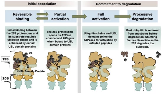 - Collins, G.A.; Goldberg, A.L. Proteins containing ubiquitin-like (Ubl) domains not only bind to 26S proteasomes but also induce their activation. Proc. Natl. Acad. Sci. USA 2020, 117, 4664–4674. [Google Scholar] [CrossRef]