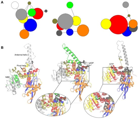 - Scarabelli, G.; Grant, B.J. Mapping the structural and dynamical features of kinesin motor domains. PLoS Comput. Biol. 2013, 9, e1003329. [Google Scholar] [CrossRef]