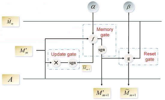 To solve this problem, the memory gate memorizes the low-order memory accessibility matrix and displays it in the high-order memory accessibility matrix. In this manner, the high-order memory accessibility matrix can represent the high-order neighbor information of the node and ensure that the low-order neighbor information is retained. The memory gate’s inputs are the m-order memory accessibility matrix and m + 1—order gating accessibility matrix . The m + 1—order memory accessibility matrix can then be obtained from the memory gate as follows.