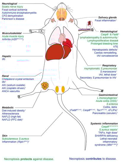 Chicago/Turabian StyleTovey Crutchfield, Emma C., Sarah E. Garnish, and Joanne M. Hildebrand. 2021. "The Role of the Key Effector of Necroptotic Cell Death, MLKL, in Mouse Models of Disease" Biomolecules 11, no. 6: 803. https://doi.org/10.3390/biom11060803