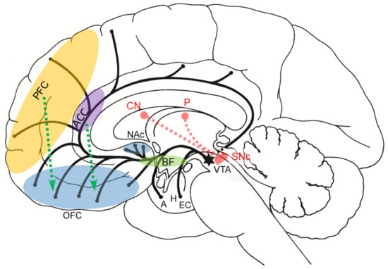 - Bissonette, G.B.; Roesch, M.R. Development and function of the midbrain dopamine system: What we know and what we need to. Genes Brain Behav. 2016, 15, 62–73. [Google Scholar] [CrossRef]