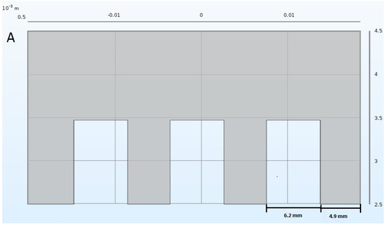 Schematic representation of a single electrode (A) and set of electrodes immersed into the culture medium (B).
