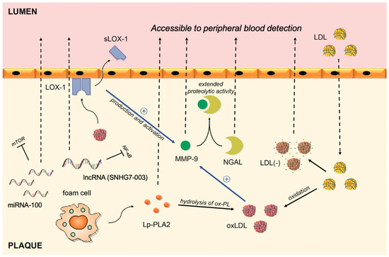 | MMP-9 | A proteolytic enzyme capable of degrading the extracellular matrix; upregulated in human macrophages stimulated by ox-LDL | Ezhov et al. [84] Wang et al. [85] |