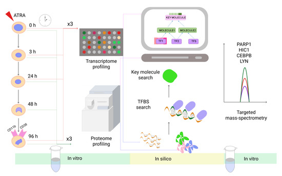 Cells harvested before ATRA treatment (time point 0 h) served as controls for both transcriptomic and proteomic profiling. The study workflow is shown in Figure 1.