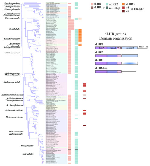 In Archaea, some genome annotations record two types of Lhr proteins, called here aLhr1 and aLhr2. The aLhr1 and aLhr2 exhibit a “Lhr-Core” domain organization [