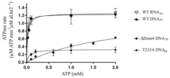 Tbar-aLhr2 to adopt active conformations. First, we showed that while the ATPase activity is carried by the SF2 catalytic core composed of the RecA1 and RecA2 domains, Domain 4 stimulates ATP hydrolysis (