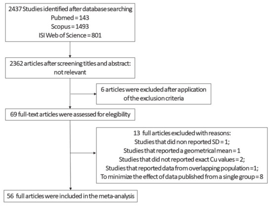 Flow diagram employed from the screening and selection of the analyzed Cu studies Table 1.