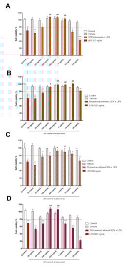 | Ethanol 50% | 1.11 ± 0.02 b | 1.27 ± 0.03 b | 3.58 ± 0.60 b,c | 0.17 ± 0.05 a,b | 3.99 ± 0.08 b | 37.39 ± 1.10 d | 6.61 ± 0.19 c | 2.19 ± 0.08 d | 1.84 ± 0.07 d |