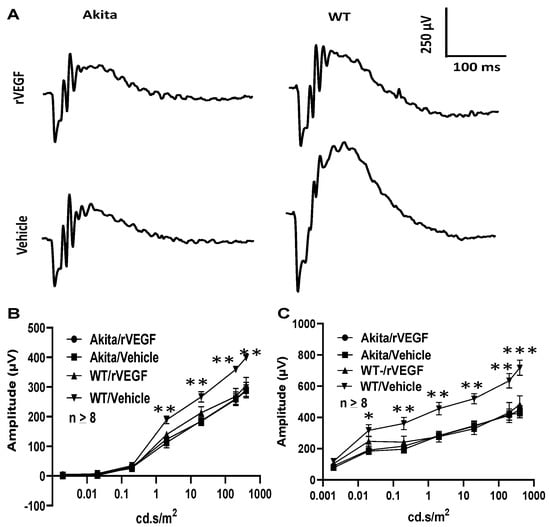 3.2. Effect of VEGF on Phtoreceptor Function in Mouse Model of DR