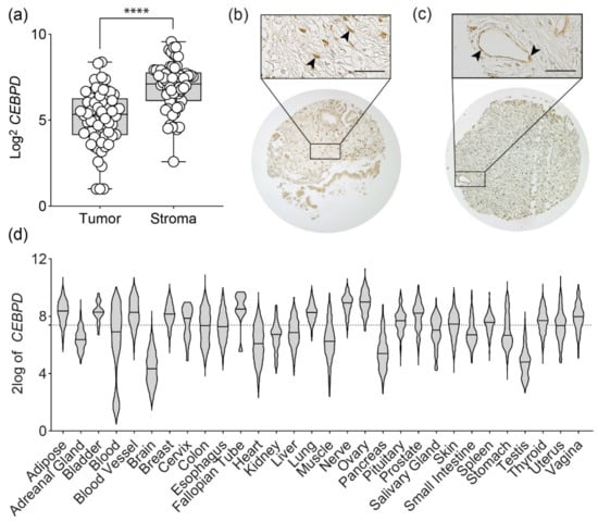 3.1. C/EBPδ Is Not Tumor-Specific and Is Widely Expressed in Different Tissues
