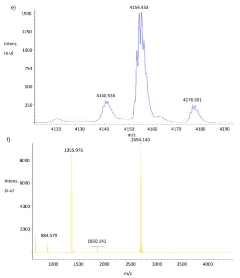 Aliquots of 500 μg/mL of Sn1b, SnE1 and SnV1 incubated with/without 500 nM of NE in 1 X TBS for four hours at 37 °C were analysed by Matrix-Assisted Laser Desorption/Ionisation-Time of Flight Mass Spectrometry (MALDI-TOF-MS). This service was provided by the University of Dundee (Dundee, UK).