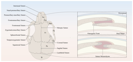 2. Maruyama, T.; Jeong, J.; Sheu, T.J.; Hsu, W. Stem cells of the suture mesenchyme in craniofacial bone development, repair and regeneration. Nat. Commun. 2016, 7, 10526. [Google Scholar] [CrossRef] [PubMed] [Green Version]