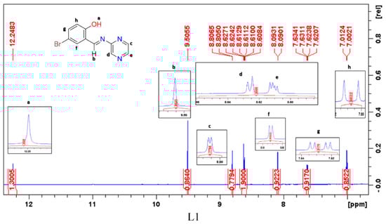 - i. (4-bromo-2-((pyrazin-2-ylimino)methyl)phenol) (L1)