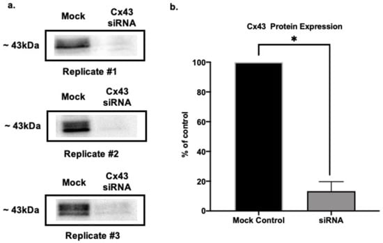 3.1. Cx43 Downregulation Validation via SDS Page and Western Blot