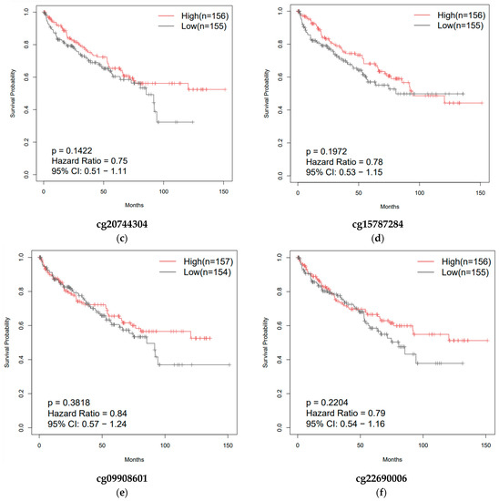 - Modhukur, V.; Iljasenko, T.; Lokk, K.; Metsalu, T.; Laisk-Podar, T.; Vilo, J. MethSurv: A web tool to perform multivariate survival analysis using DNA methylation data. Epigenomics 2018, 10, 277–288. [Google Scholar] [CrossRef] [PubMed]