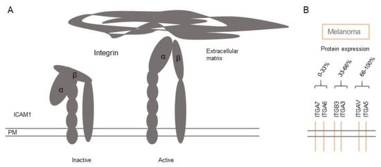 - Arias-Mejias, S.M.; Warda, K.Y.; Quattrocchi, E.; Alonso-Quinones, H.; Sominidi-Damodaran, S.; Meves, A. The role of integrins in melanoma: A review. Int. J. Dermatol. 2020, 59, 525–534. [Google Scholar] [CrossRef] [PubMed]