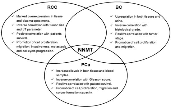 Among urological neoplasms, renal cell carcinoma (RCC) was the first to be examined in regard to potential NNMT involvement, in which enzyme overexpression was described.