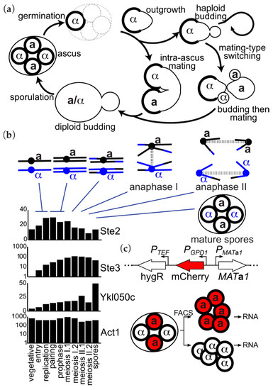- Herskowitz, I. Life cycle of the budding yeast Saccharomyces cerevisiae. Microbiol. Rev. 1988, 52, 536–553. [Google Scholar] [CrossRef]