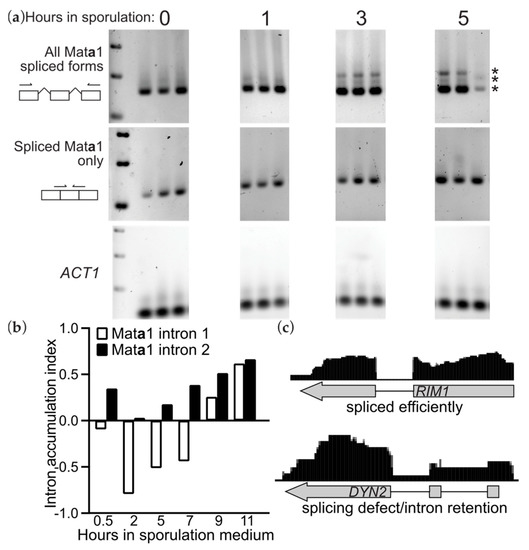 3.2. Accumulation of Unspliced Mata1 Transcripts in MATa Spores