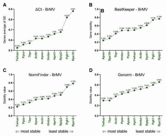 Chicago/Turabian StyleSzczepkowska, Aleksandra, András Harazin, Lilla Barna, Mária A. Deli, and Janina Skipor. 2021. "Identification of Reference Genes for Circadian Studies on Brain Microvessels and Choroid Plexus Samples Isolated from Rats" Biomolecules 11, no. 8: 1227. https://doi.org/10.3390/biom11081227