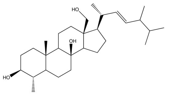 Chemical structure of 4α,24-dimethyl-5α-cholest-8β,18-dihydroxy,22E-en-3β-ol (ST-1).