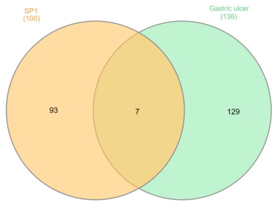 Venn diagram analysis for ST-1 and gastric ulcer disease (C0038358) genes.