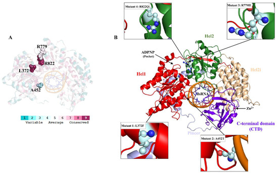 - Glaser, F.; Pupko, T.; Paz, I.; Bell, R.E.; Bechor-Shental, D.; Martz, E.; Ben-Tal, N. ConSurf: Identification of functional regions in proteins by surface-mapping of phylogenetic information. Bioinformatics 2003, 19, 163–164. [Google Scholar] [CrossRef] [Green Version]