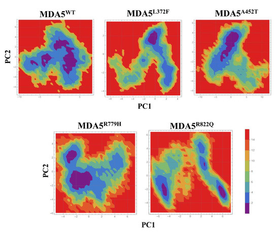 | Trajectory Analysis | MDA5WT | MDA5L372F | MDA5A452T | MDA5R779H | MDA5R822Q |