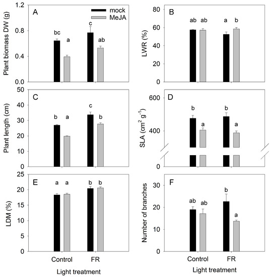 - Moreno, J.; Tao, Y.; Chory, J.; Ballare, C.L. Ecological modulation of plant defense via phytochrome control of jasmonate sensitivity. Proc. Natl. Acad. Sci. USA 2009, 106, 4935–4940. [Google Scholar] [CrossRef]