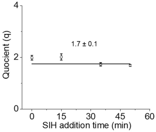 The quotient of the rates of fluorescence increased in the presence and absence of SIH. The quotient (q) was determined by dividing the rates of the increase in fluorescence in the presence of SIH by the rates of the increase in fluorescence in the absence of SIH; the data from Figure 5 were used.