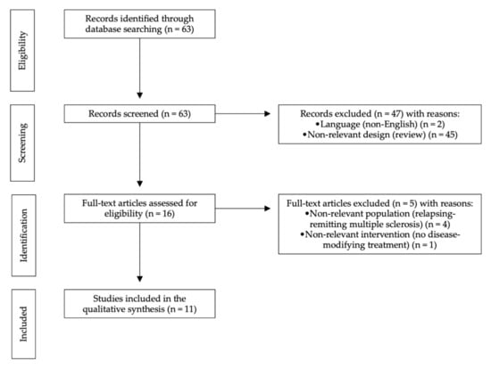 A review of the literature concerning phase III clinical trials in PMS was performed using PubMed. Search terms included the following: progressive, multiple sclerosis, disease-modifying treatment AND phase III trial. The last search was performed on the 30th of June 2021. This search yielded 63 results.