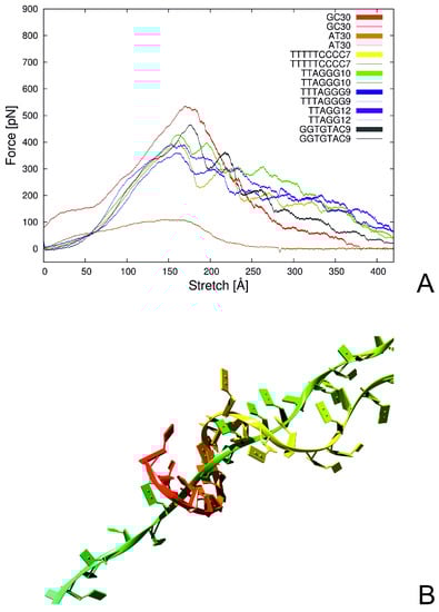 - Krupa, P.; Wales, D.J.; Sieradzan, A.K. Computational studies of the mechanical stability for single-strand break DNA. J. Phys. Chem. B 2018, 122, 8166–8173. [Google Scholar] [CrossRef]