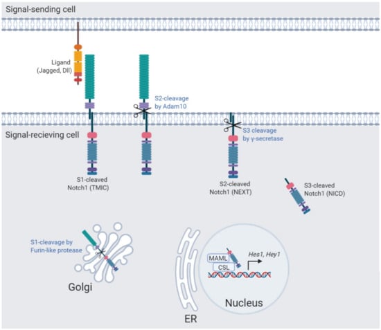 - Kopan, R.; Ilagan, M.X.G. The Canonical Notch Signaling Pathway: Unfolding the Activation Mechanism. Cell 2009, 137, 216–233. [Google Scholar] [CrossRef]