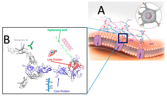 - Morawski, M.; Dityatev, A.; Hartlage-Rübsamen, M.; Blosa, M.; Holzer, M.; Flach, K.; Pavlica, S.; Dityateva, G.; Grosche, J.; Brückner, G. Tenascin-R promotes assembly of the extracellular matrix of perineuronal nets via clustering of aggrecan. Philos. Trans. R. Soc. B Biol. Sci. 2014, 369, 20140046. [Google Scholar] [CrossRef]