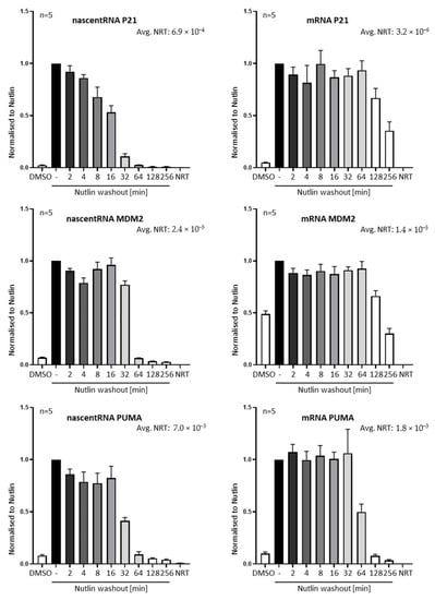 3.2. Nutlin Washout Diminishes p53-Mediated Transcription within an Hour