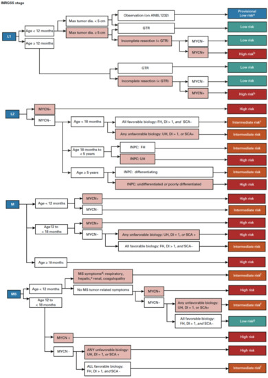 - Cohn, S.L.; Pearson, A.D.; London, W.B.; Monclair, T.; Ambros, P.F.; Brodeur, G.M.; Faldum, A.; Hero, B.; Iehara, T.; Machin, D.; et al. The International Neuroblastoma Risk Group (INRG) classification system: An INRG Task Force report. J. Clin. Oncol. 2009, 27, 289–297. [Google Scholar] [CrossRef]